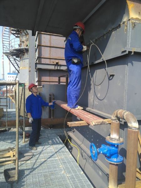 10月3日下午,山東HXTS脫硫、濕電項(xiàng)目現(xiàn)場(chǎng)陳工和劉工為盡早完成安裝,使設(shè)備投入運(yùn)行,他們不放過(guò)任何可能影響質(zhì)量的細(xì)節(jié),正和安裝人員緊鑼密鼓地進(jìn)行著濕電出口煙道焊縫焊接及絕緣箱三通對(duì)口作業(yè)。這是我司再次承接HXTS項(xiàng)目,體現(xiàn)了其對(duì)我司產(chǎn)品及安裝質(zhì)量的充分認(rèn)可。
