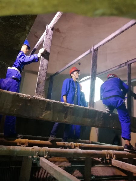 10月4日下午,山東LSTS脫硫現(xiàn)場(chǎng),正值中秋,顧工到脫硫塔里和安裝人員一起拆起了支架來(lái),忙到忘卻了中秋。