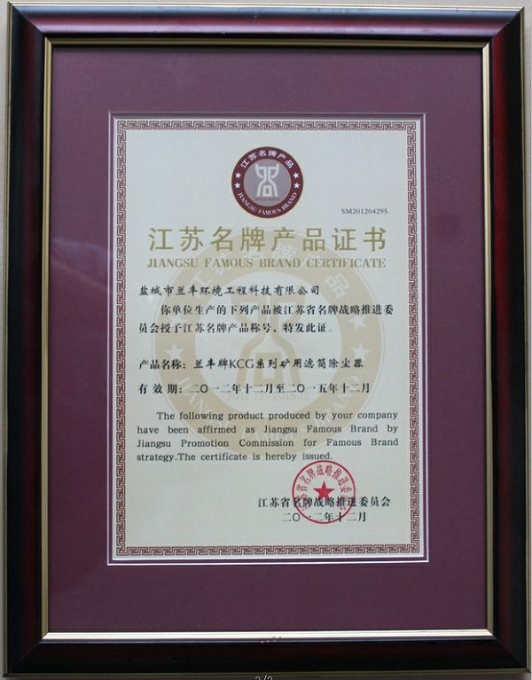我司“蘭豐牌KCG系列礦用濾筒除塵器”榮獲江蘇省名牌產品證書,市局領導希望我司再接再厲把蘭豐環保的產品推向海外打造成全國知名品牌。