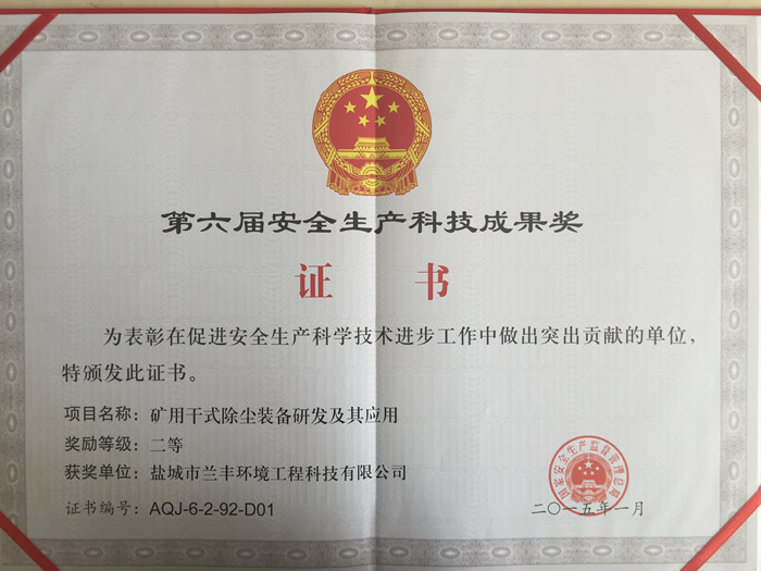 近日,我司收到國家安全監督管理總局通知,我司開發的《礦用干式除塵裝備研發及其應用》喜獲第六屆安全生產科技成果二等獎,這是國內煤礦井下除塵唯一獲此殊榮的產品。這表明我司開發的礦用干式除塵裝備不但獲得了用戶的認可,先后在中煤集團、大屯煤電、中煤三建、神東集團、陜煤集團使用,均得到了用戶的好評,尤其深受一線礦工的喜愛;而且得到了省、國家安全監督管理部門的高度認同,正準備大力推廣。一致認為該產品的推廣及普及必將推動井下粉塵冶理、保護礦工身心健康的工作再上新臺階。
