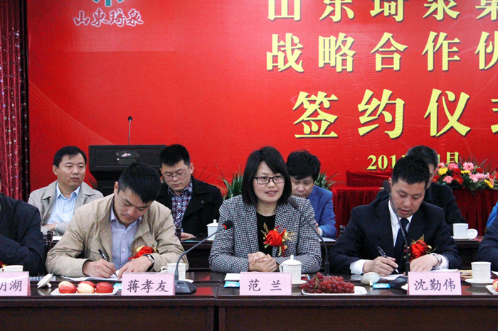 4月18日,我司范蘭總經理應邀參加山東琦泉集團戰略合作伙伴簽約儀式。會上我司范蘭總經理與山東琦泉集團簽訂了戰略合作伙伴協議,被授于“戰略合作伙伴”牌匾,并在會上做交流發言。
