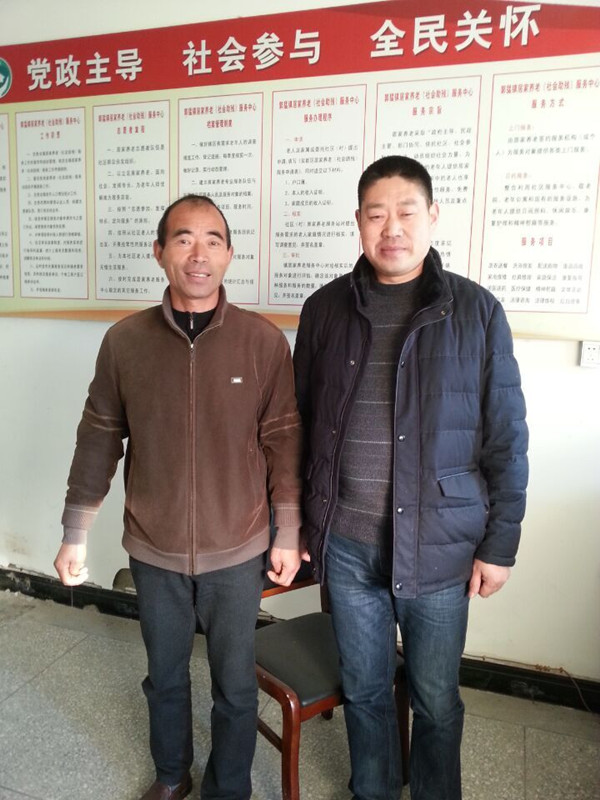 圖為生產(chǎn)廠長范宏與敬老院院長汪志紅親切合影