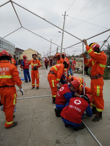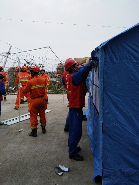 6月24日一早,總經理范蘭指示生產部組織一支反應敏捷、技術優良、甘于奉獻的救援小分隊,員工們反應積極,紛紛要求加入。最終救援小分隊由生產部范宏、質量保障部陳斌、工人代表吳悅升、劉介松、吳飛、時洪華、邵存兵、鄒一升等組成,由范廠帶領趕到受災最嚴重的陳良鎮現場,協助搭帳篷、修民房、運物資。8人救援小分隊,體現了蘭豐人與受災群眾心連心、同呼吸、共命運,用愛與互助的實際行動,為災區救援貢獻力量。蘭豐環保還將繼續關注災區的災后重建工作,祈禱“阜寧,復寧”。