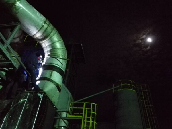 9月14日晚上9:00華源調試現場,程峰帶領的團隊正在緊張的作業。這已是他們第四次為了除塵設備順利安裝調試晚上作業了,近日來他日夜查看設備調試運行情況,每天也只有兩三個小時的睡覺時間。雖然離家只有不到兩小時的車程,但中秋之夜他還是放棄了回家與家人團圓,獨自一人留守在現場。