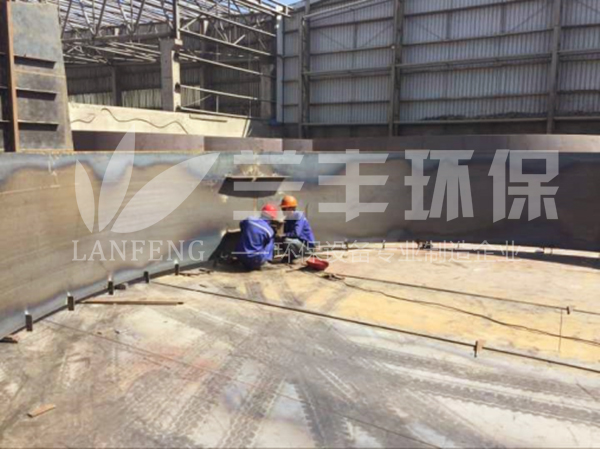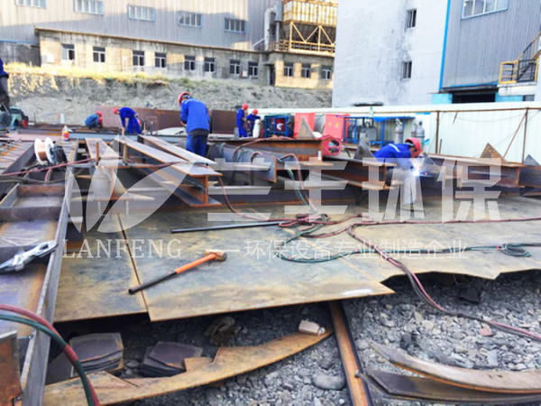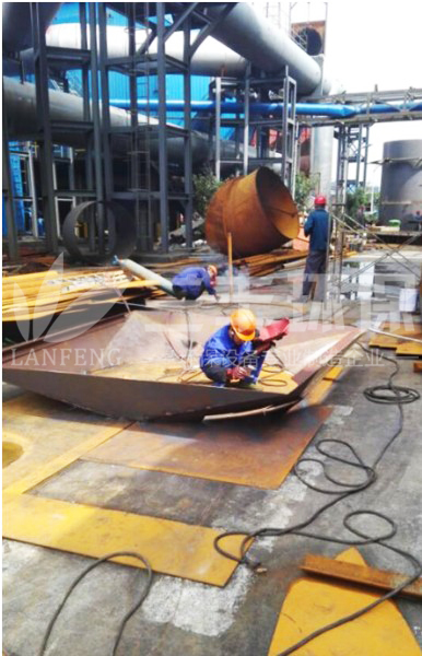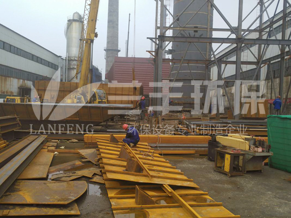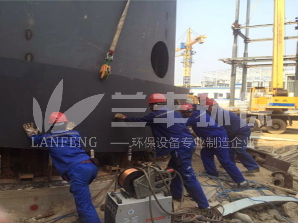 工程現場四:山東脫硫濕電現場。燥熱的午后,一場大雨帶來了一絲絲涼爽,大家正進行設備殼體的預制、吊裝及支架焊接作業(圖10、圖11)。