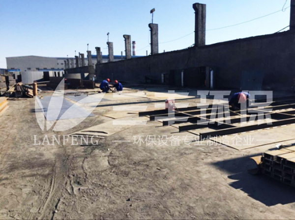 因新疆冬天天氣寒冷,無法安裝作業的特殊性,為了趕工期,大家正緊張的進行土建施工(圖2、圖3)和現場預制(圖4、圖5)。工程現場二:新疆脫硫脫硝現場。因該工程剛進場施工,大家正在準備著設備安裝前的預制工作(圖6、圖7)。