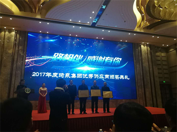 會上,琦泉集團相關領導與來自全國各地的優秀供應商合作伙伴們齊聚一堂,分享探討未來合作發展規劃及雙贏戰略。我司作為環保供應商參加典禮并榮獲優秀供應商深度合作獎。
