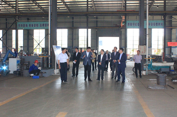 我司總經理豐慶國、副總經理顧衛忠陪同吳本輝一行參觀了公司車間等地,豐慶國介紹了公司近年來的發展,重點介紹了上半年公司的市場開拓、科技創新工作。今年以來,我司繼續去年的良好發展態勢,經營形勢喜人,董事長范蘭身先士卒,奔走在開拓市場的第一線,市場部全情投入,1-5月已簽訂合同3億多元;行業進一步拓展,首次承接了鋼鐵行業的煙氣綜合治理項目;工程承接實施能力持續提升,收到眾多客戶的認可,承接了首個億元工程。
