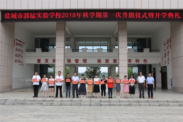 (本站訊)9月3日,鹽城市郭猛實驗學校召開2018年秋學期第一次升旗儀式暨開學典禮,我司副總經理顧衛忠出席活動,發放了第一批蘭豐獎學金,并受贈“情系教育、惠澤桑梓”銅牌。