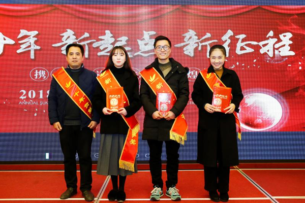 十年創業,十年耕耘!會上,首先頒發了“十年貢獻獎”,表彰伴隨公司十年發展、貢獻突出的員工們;會上,還對過去一年工作中,涌現的愛崗敬業、樂于奉獻、進步顯著、表現突出的個人和團隊進行表彰,頒發先進個人、新人成長、個人進步、銷售能手、項目能手、建言獻策等個人獎項,以及先進個人、先進部門、優秀項目、創新開拓等團隊獎項。值得一提的是,有多名員工出差超過300天,公司為這些員工家屬們頒發“賢內助獎”,以表彰她們默默奉獻,背后對公司的一貫支持。
