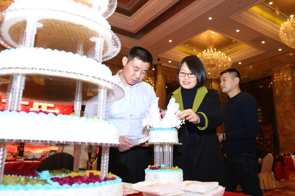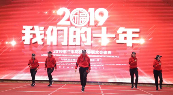 青春時尚的舞蹈,交錯90年代的歌聲,舞蹈《你好,舊時光》,讓我們在舊時光里翩翩起舞;看著十年前的老照片,我們在詩朗誦《我們的十年》里回顧蘭豐環保過去十年里一個個光影片段,十層蛋糕象征著我們走過的每一步,寓意節節高。