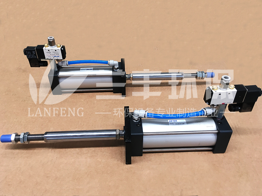 ④沖擊氣缸:這是一種新型元件。它把壓縮氣體的壓力能轉換為活塞高速(10~20米/秒)運動的動能,借以做功。