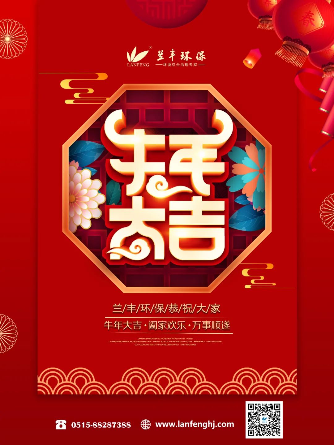 喜迎牛年!歡度新年!在這個辭舊迎新的時刻,蘭豐環保向全體員工和一直支持我們的新老朋友們,致以新春的問候和祝福,祝愿大家在新的一年里,身體健康!工作順利!萬事如意!再創輝煌!