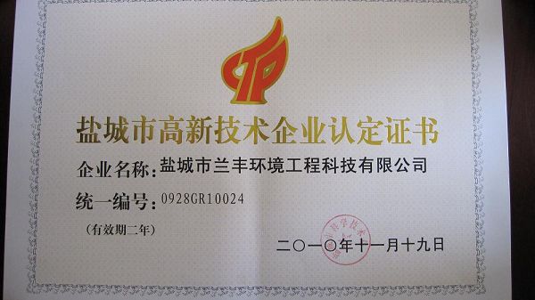 近日,鹽城市科學技術局下發《關于認定鹽城市第三十批高新技術企業的通知》(鹽科計[145]號),鹽城市蘭豐環境工程科技有限公司榜上有名。