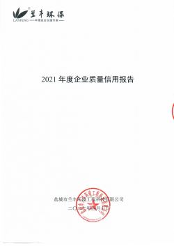 關于《2021年度企業質量信用報告》的公示2022-04-13鹽城市蘭豐環境工程科技有限公司(以下簡稱為“蘭豐環保"或“本公司”) 2021 年公開發布的《企業質量信用報告》,是結合本公司2021年度質量誠信體系建設情況編制而成。 -